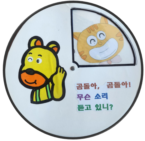 2) 곰돌이 그림을 그리고 '곰돌아, 곰돌아! 무슨 소리 듣고 있니?' 를 적은 후 코팅한다.