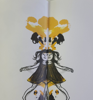 이수지의 '경계 3부작' 「파도야 놀자」,「그림자 놀이」,「거울속으로」 중, 「거울속으로」는 가운데 접지가 있는 책의 성질을 이용하여, 대칭적 구도와 경계를 적절하게 활용하여 데칼코마니가 연상이되는 그림책이다.