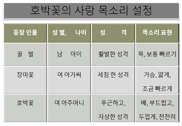 목소리 설정시 아래의 표로 정리하면 구연하는데 훨씬 도움이 된다.