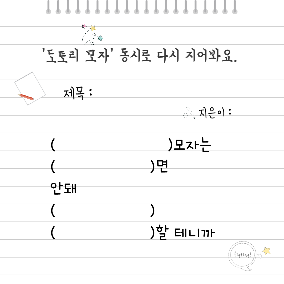 예전에 초등학생 독서 논술 지도할 때 '도토리 모자'로 개작 해 보기 수업 진행한 적이 있었어요.